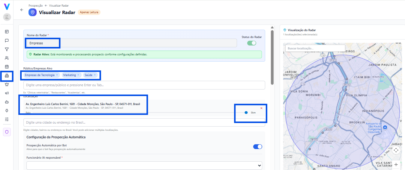 Selecione o Funcionário IA que realizará a prospecção automática.