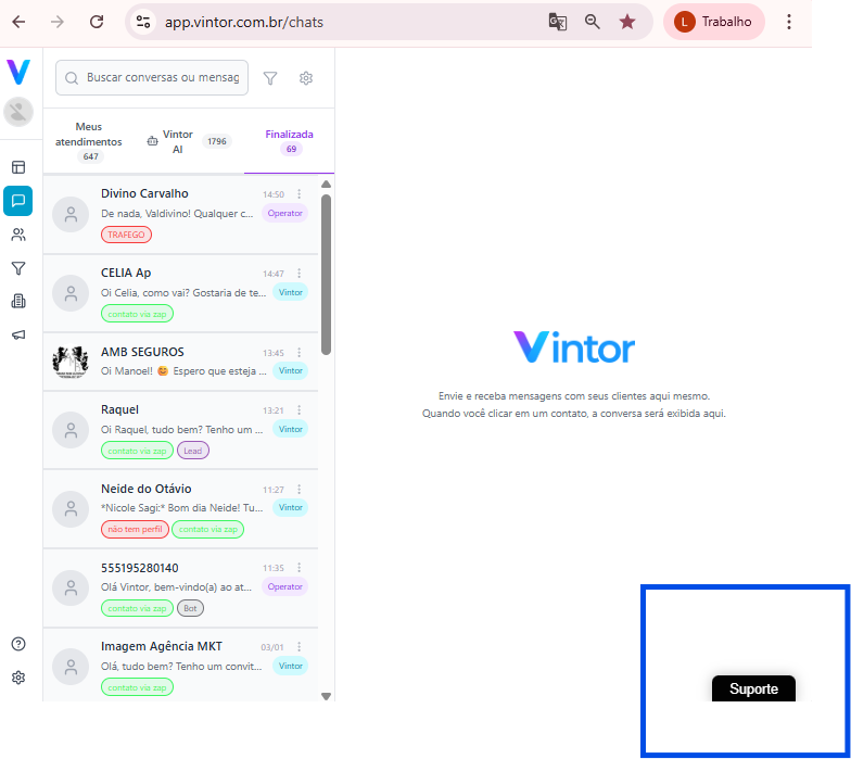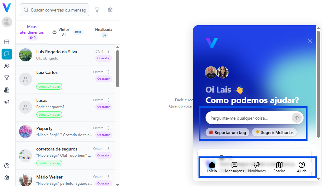 O Vintor possui um Assistente Virtual integrado para apoiar todos os usuários. Nele, você encontrará conteúdos sobre: